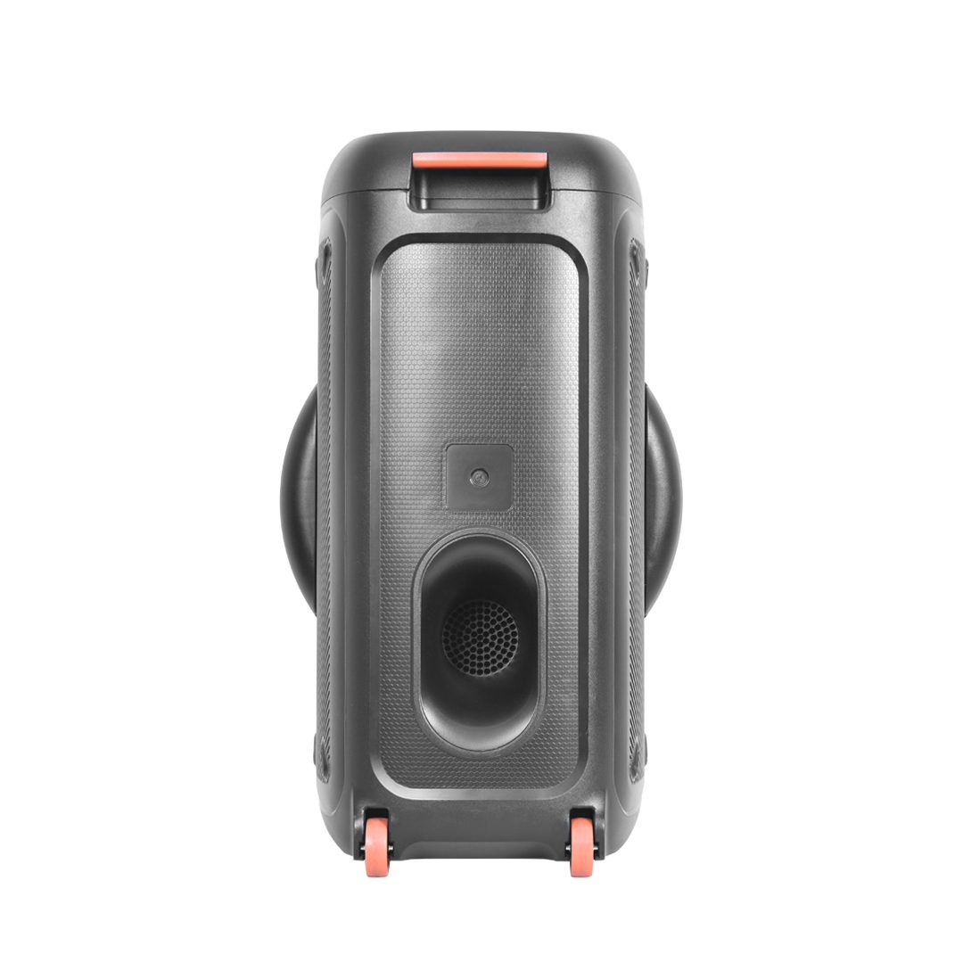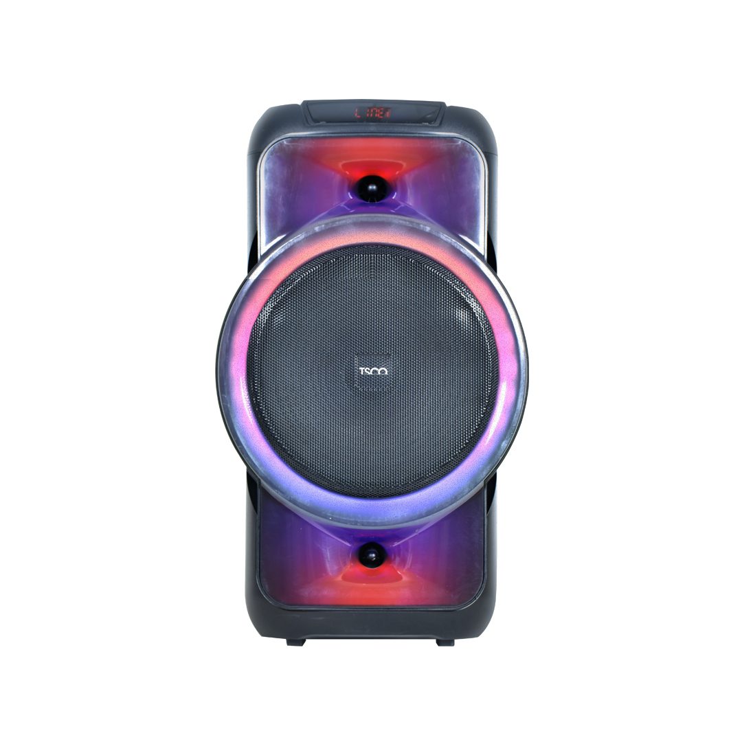 اسپیکر نیمه پرتابل تسکو مدل TS 1902 با 5.5 کیلو وزن و چرخ های تعبیهشده در پشت دستگاه و با پشتیبانی از پورتهای USB ،TF، BT و AUX نسخه بلوتوث 5.0 و 1 پورت میکروفون به تمام گجتهای صوتی و تصویری بهجز هدفون متصل میشود.