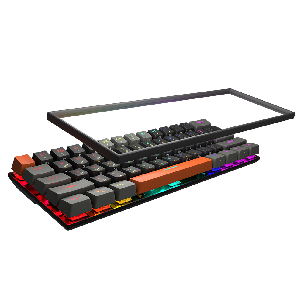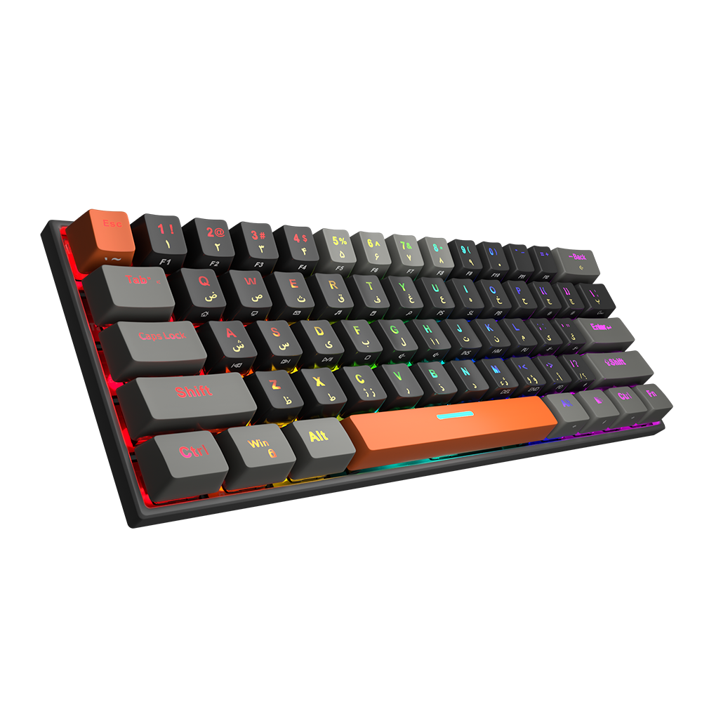 کیبورد GK 8161 در رنگهای طوسی، نارنجی و مشکی عرضه میشود که زیبایی و جذابیت خاصی به میز کار شما میبخشد و به راحتی با سایر تجهیزات گیمینگ شما هماهنگ میشود.