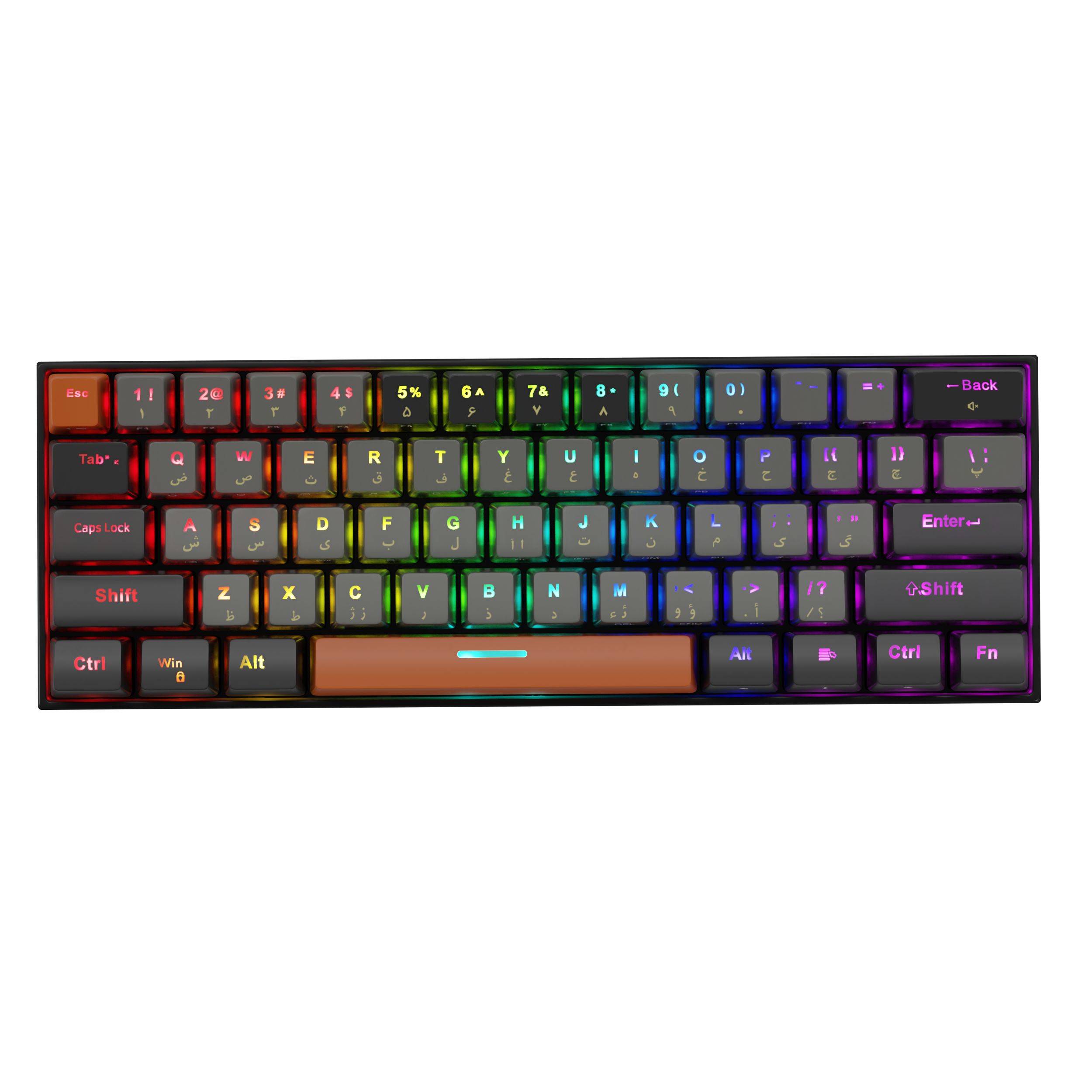 این کیبورد دارای 61 کلید و 12 کلید میانبر با استفاده از دکمه Fn است که دسترسی سریع به امکانات مختلف را برای شما فراهم میکند. کلیدهای میانبر به شما کمک میکنند تا به راحتی و سریعاً به عملکردهای مختلف دسترسی پیدا کنید و تجربهای بینقص از بازی داشته باشید.
